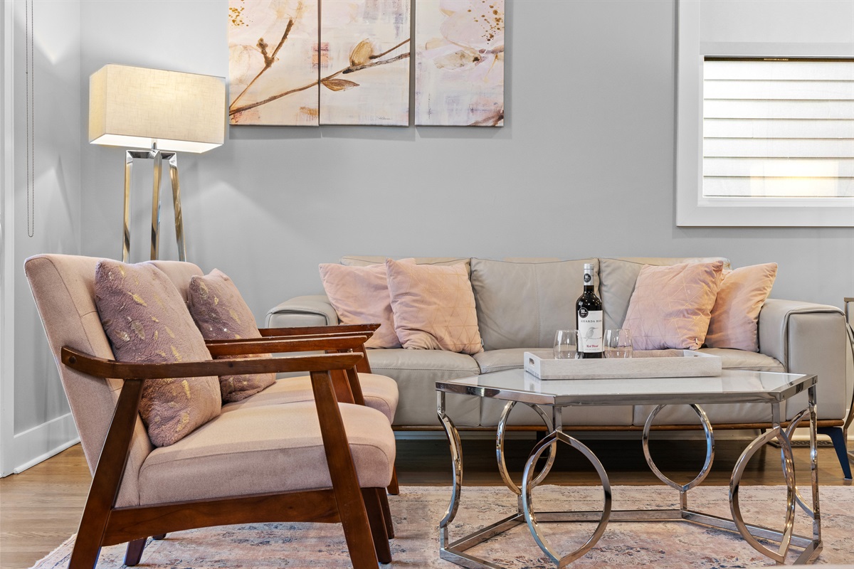 The living spaces are designed to hold the rhythm of your stay—whether you’re gathering for coffee, winding down after a night out, or simply spending time together without a plan. There's room to spread out without feeling disconnected, and the layout naturally invites relaxed conversation and shared moments. Clean lines, cozy textures, and thoughtful lighting make the space feel both elevated and easy.