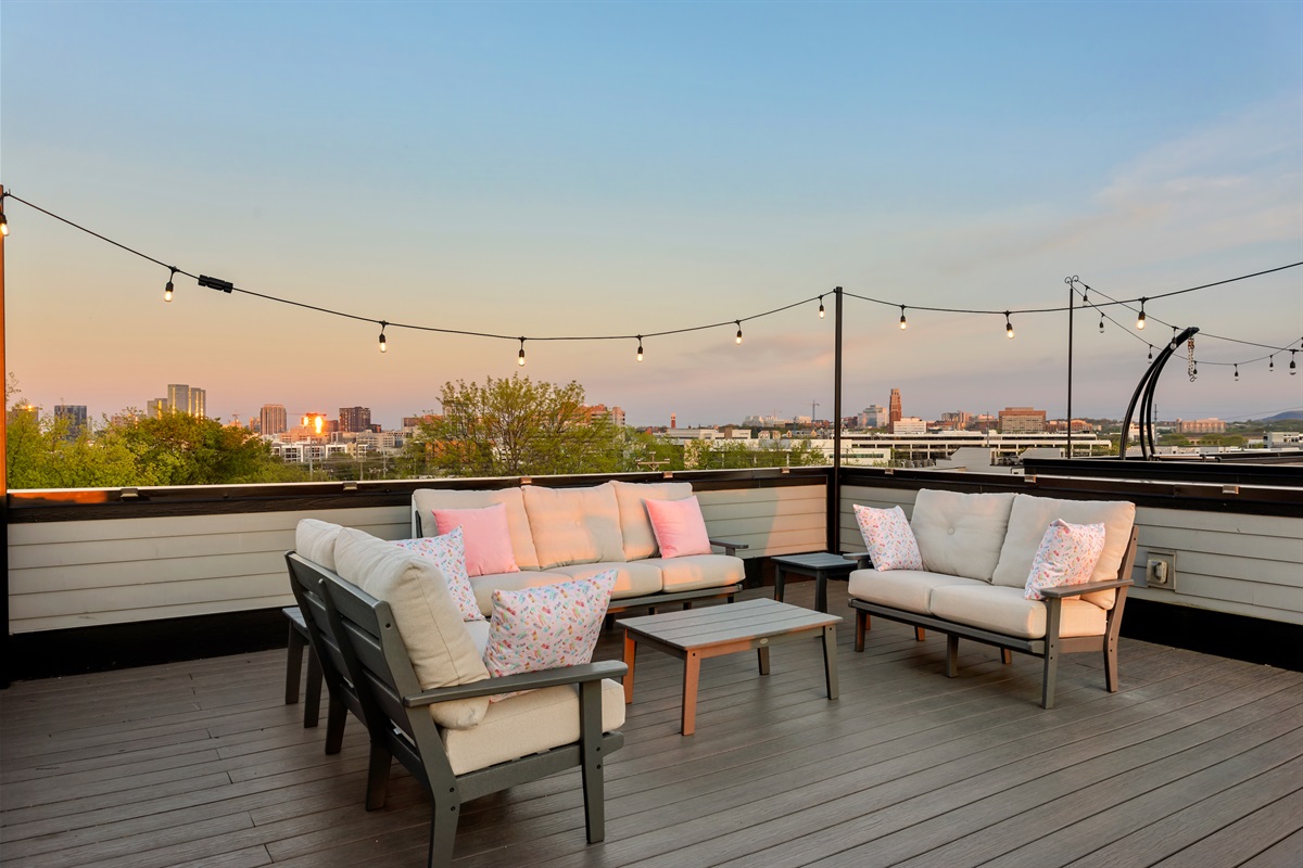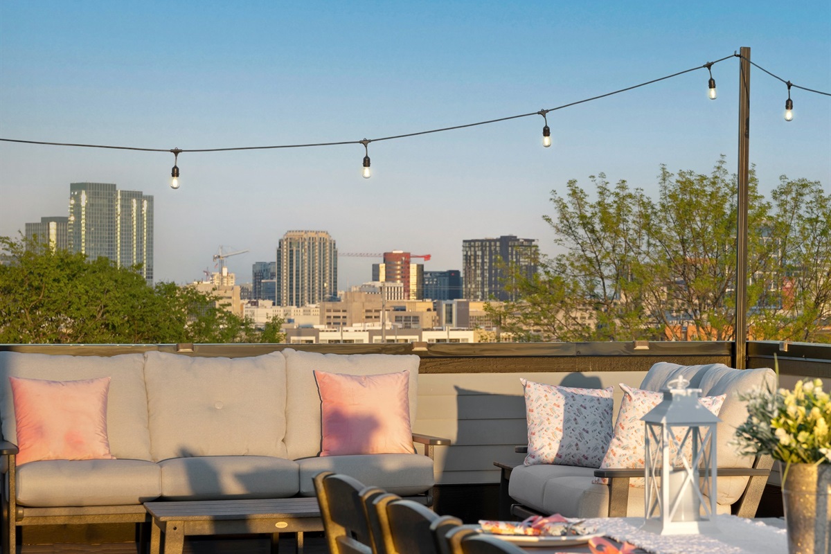 • 1,000 sq ft private rooftop terrace with city skyline views views and seating